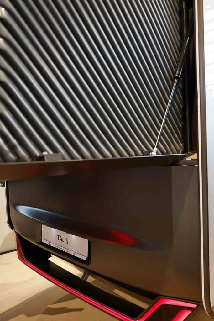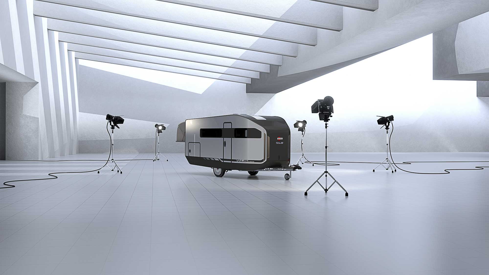 Conçu dans une soufflerie, afin d’optimiser sa pénétration dans l’air, la caravane Talis offre une forme aérodynamique avec un avant conique prêt à fendre l’air. L’arrière, lui, se rétrécit pour réduire au maximum les turbulences qui ralentissent le véhicule tracteur. Et ainsi réduire sa consommation d’énergie. Cet aérodynamisme associé à la légèreté de la construction font de la Talis une caravane pensée pour être tractée par des véhicules électriques sans trop réduire leur autonomie.