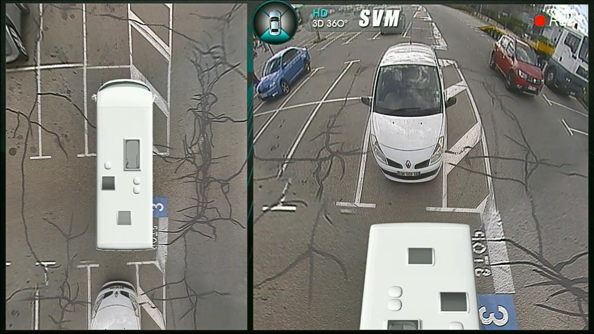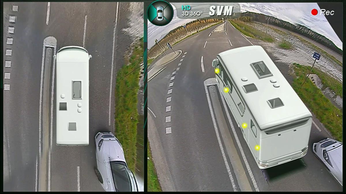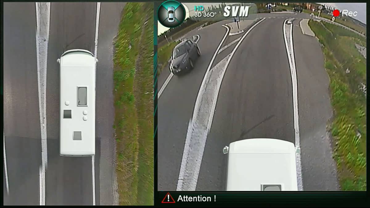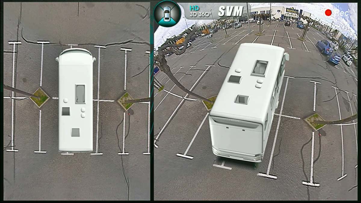 Cette vue communément appelée Bird View ou Drone View, vous donne une vue des quatre côtés de votre camping-car mais également une simulation d’une vue du dessus. Comment cela est-il possible ? Quatre caméras HD 180° sont fixées des 4 côtés du camping-car. Les images produites sont assemblées par logiciel pour produire une vue à 360° et pour simuler une vue du dessus. Comme si le véhicule était filmé par dessus par un drone. Une vision très naturelle pour le cerveau car elle reproduit les réflexes de l’enfant jouant sur un tapis avec ses voitures. Ou, pour les plus jeunes, d’un jeu vidéo avec une vue du dessus.