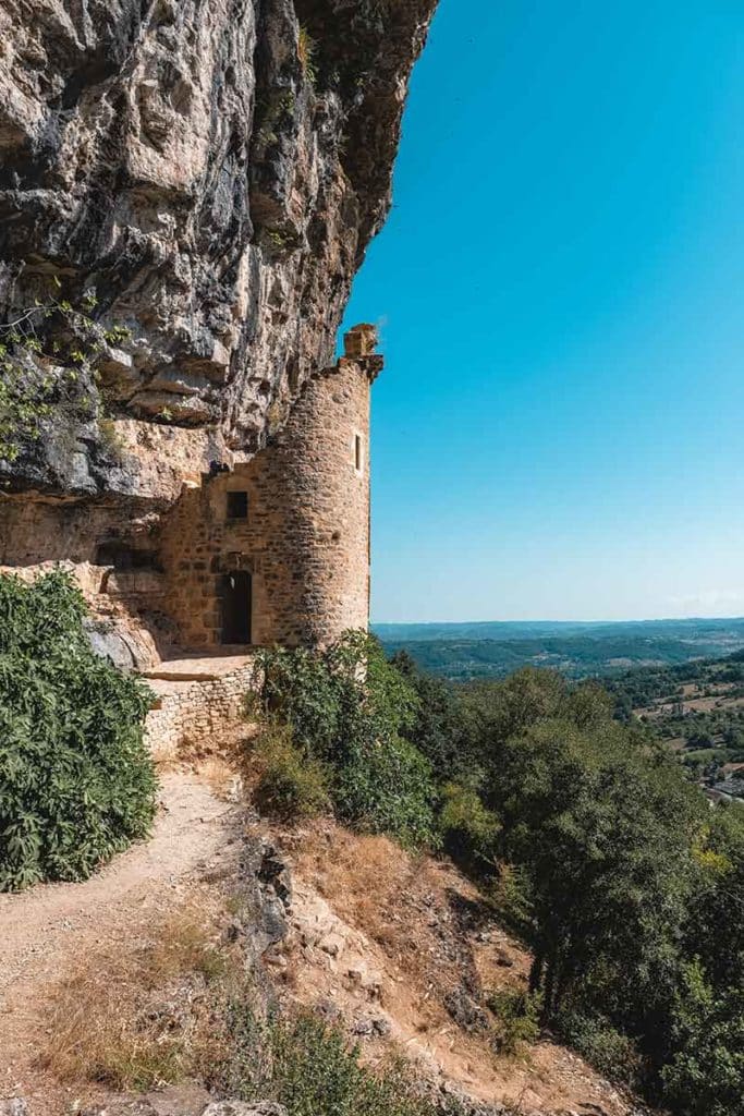 Les plus courageux poursuivront leur balade jusqu’au château des Anglais. Vestige de la guerre de 100 ans, ce château niche dans les hautes falaises du cirque d’Autoire. Tout au long du sentier qui vous y conduit, vous profiterez de très beaux points de vue sur le village d’Autoire. Autour du château, les vertigineuses falaises (150-200 mètres) sont un haut-lieu d’escalade avec plus de 150 voies. Si vous ne vous sentez pas le courage d’arpenter les flancs du cirque d’Autoire, vous pouvez accéder au château des Anglais depuis le belvédère au lieu-dit Siran. Un sentier de 800 mètres vous y conduira. Ce dernier a un dénivelé bien plus modeste que l’itinéraire au départ du village.