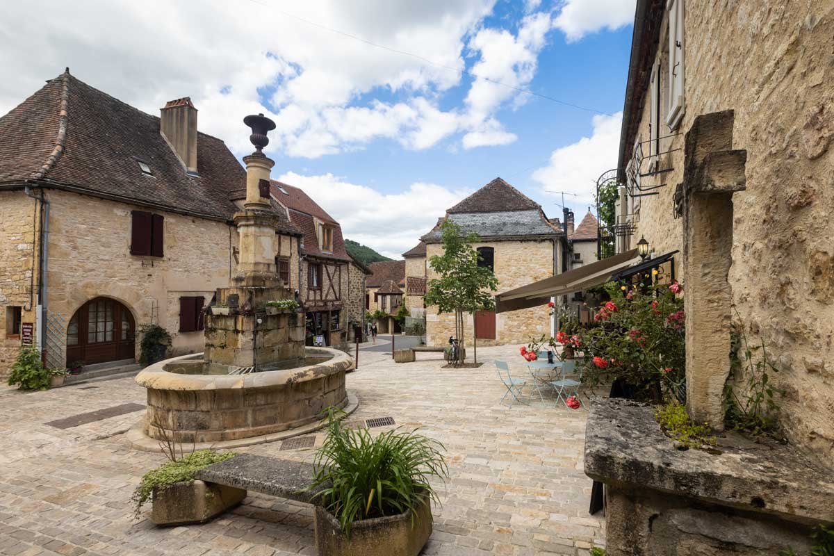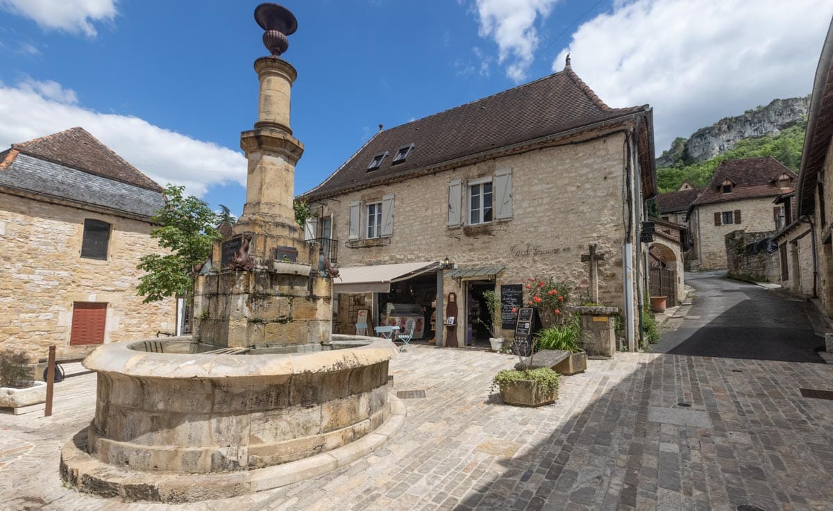 Autoire niche entre Gramat et Saint-Céré, non loin de la vallée de la Dordogne, dans un cirque naturel de hautes falaises calcaires (150 à 200 mètres), écrin de nature pour ce petit joyau. On est tout de suite séduit lorsque l’on arrive à Autoire. Il faut dire qu’aucune construction récente ne vient perturber le paysage. Seules les habitations historiques se présentent à vous avec leur toits bruns et leurs pierres blondes. Le village est tout petit. Sa visite ne demande guère plus d’une heure. Prenez-donc le temps d’arpenter ses ruelles afin d’en admirer toutes les demeures, qu’elles soient à colombage ou à encorbellements, les tourelles et les pigeonniers. Parmi les immanquables de votre promenade à Autoire, une très belle fontaine ornée de dauphins en bronze au cœur du village, une église romane ou encore le château de Limargue, très belle demeure médiévale reconnaissable à sa tour d’escalier. L’histoire du village d’Autoire remonte au moyen-âge. C’est toutefois aux 17e et 18e siècles qu’il s’est enrichi de ses très beaux manoirs qui lui donnent aujourd’hui son identité. Le village servait alors de résidence secondaire aux notables de Saint-Céré et était surnommé le « Petit Versailles ». A vous de nous dire s’il mérite son surnom lors de votre visite à Autoire pendant vos prochaines vacances en camping dans le Lot.