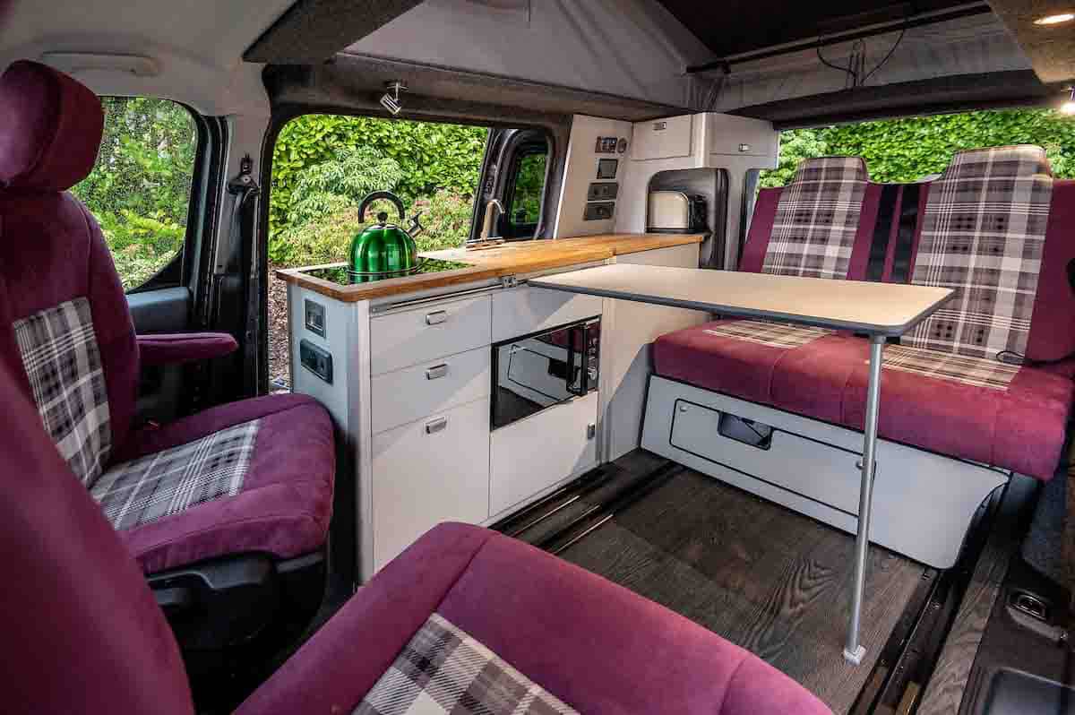 Comme son prédécesseur, ce nouveau modèle est conçu sur une base japonaise. C’est en effet un Toyota qui lui sert de support. Son toit relevable est couvert de panneaux solaires de 930 watts qui devraient, selon le fabricant, alimenter pendant plusieurs jours éclairage, plaque à induction, chauffage ou réfrigérateur sans avoir à se brancher sur le secteur. Le fabricant écossais a d’ailleurs poussé sa logique environnementale jusqu’au bout. Afin d’éviter aux propriétaires de devoir s’offrir un deuxième véhicule, CampervanCO a opté pour un van très flexible favorisant les multi-usages. Le Toyota Proace Eco REVOLUTION peut en effet très facilement basculer du van 4 places au monospace 7 places en enlevant la cuisine. Une idée très pratique pour les personnes n’ayant pas le budget pour s’offrir un van équipé et un véhicule pour l’usage du quotidien.