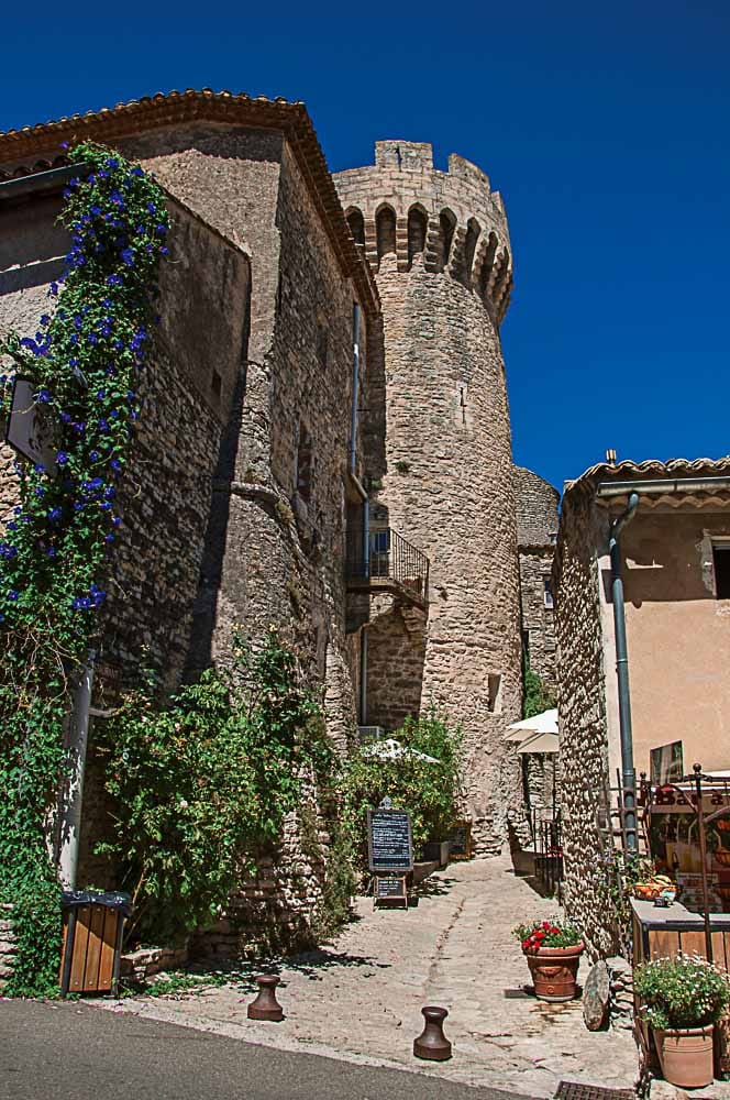 Pour accéder au château, vous devez remonter les étroites ruelles pavées qui grimpent à flanc de colline. En Provence on nomme ces ruelles pavées des Calades. Ces calades sont bordées de ravissantes maisons provençales dont les volets colorés tranchent sur la pierre blonde. Au gré de votre promenade, prenez également le temps d’admirer les très beaux points de vue qui s’ouvrent sur le Luberon.