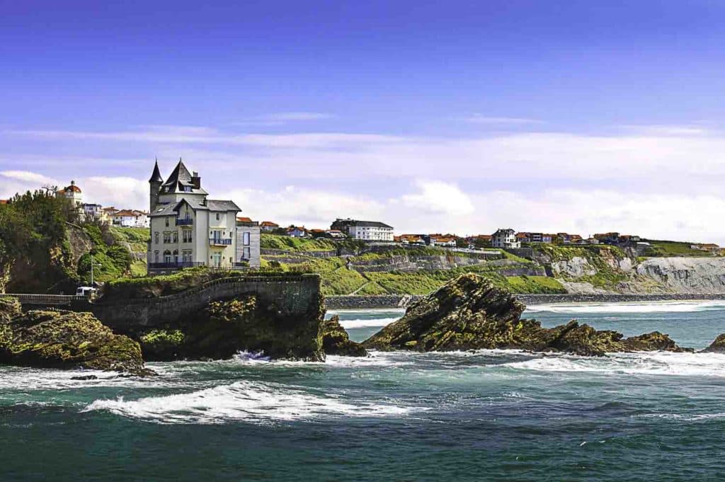 Si les habilitants du Pays Basque vous demanderont de ne pas réduire leur région à Biarritz, la très exclusive cité balnéaire est malgré tout un immanquable de vos vacances en camping dans le Pays-Basque. C’est un des lieux les plus prisé de la côte Atlantique. Réputée pour ses vagues et ses surfeurs, cette station doit sa popularité à l’impératrice Eugénie. L’épouse de Napoléon III est en effet tombée sous le charme de Biarritz lors d’un séjour alors qu’elle était enfant. Devenue impératrice, elle en fait son lieu de résidence d’été et Napoléon III lui fait construire, en bord de mer, la somptueuse Villa Eugénie en 1854, aujourd’hui un hôtel de luxe. Dans les pas de l’impératrice, le gotha international se rua vers Biarritz fut sacrée la « ville la plus huppé de la 2e moitié du 19e siècle ». De cette époque la ville a conservé un charme désuet qui s’exprime dans ses jardins – promenades aménagés au flanc des falaises. Le site emblématique de Biarritz est sans nul doute le rocher de la Vierge. Ce rocher qui se dresse dans l’océan face au front de mer fut relié à la terre par une passerelle par Napoléon III. Cette dernière ne résista pas au vent et aux vagues. Elle fut donc remplacé par un pont construit par les ateliers Eiffel.