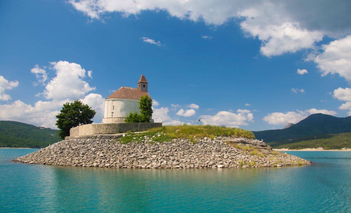L’histoire du lac de Serre-Ponçon remonte au 19e siècle. La Durance est alors une rivière très capricieuse. Son débit varie de 18 à 1800m3 seconde ! Ses crues de 1843 et 1856, notamment, firent d’importants dégâts. Ces dernières, ainsi que les périodes de sécheresses, amenèrent les autorités locales à envisager de construire un barrage sur la Durance. L’intérêt de pouvoir aménager une centrale hydro-électrique fut un argument supplémentaire. Il faudra cependant attendre plus d’un demi-siècle pour que le barrage voit le jour. Sa construction fut en effet entamée en 1955 pour être mis en fonctionnement en 1959. Deux villages furent alors engloutis par les eaux du lac : Savines et Ubaye. Si le second fut abandonné, le premier fut reconstruit quelques centaines de mètres plus loin, sur les rives du lac. Rebaptisé Savines-le-Lac, il est à ce jour le seul village à avoir les pieds dans l’eau du lac de Serre-Ponçon. De cette époque, seule à survécu la chapelle de Saint-Michel sur son îlot. Construite en hauteur, cette chapelle a en effet échappé à la montée des eaux. Le muséoscope du lac, à Rousset, vous raconte en détail l’histoire de la création du lac et des villages détruits. Profitez donc votre séjour en camping dans les Hautes-Alpes ou en camping dans les Alpes-de-Haute-Provence pour aller le visiter.