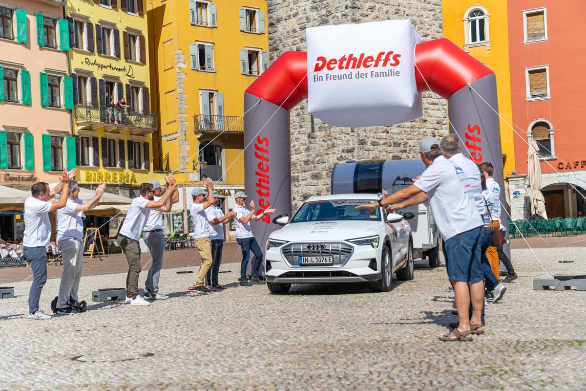 Après 6 heures de route, le Duo Audi et E.Home est entré dans le centre ville de Riva, sur les rives du Lac de Garde. Aucune recharge n’a été nécessaire pour parcourir les 386 kilomètres. Au contraire, les batteries de la caravane et de la voiture affichaient encore de l’autonomie en arrivant à destination. Le trajet a été effectué à une vitesse moyenne de 62,3 km/h.