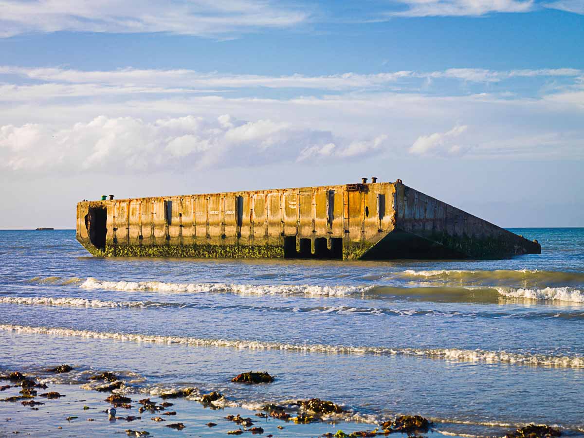 Comme nous l’avons évoqué plus haut, Arromanches tient une place centrale dans le débarquement et la bataille de Normandie. Ce port artificiel « Mulberry B » a en effet vu défiler la majorité des troupes alliées pendant les premiers jours qui ont suivi le jour J, jusqu’à la prise du port de Cherbourg. Pas surprenant de ce fait qu’Arromanches abrite quelques-uns des sites les plus importants et notamment le cinéma circulaire d’Arromanches 360. Ce cinéma composé de 9 écrans circulaires vous plonge dans les combats du débarquement et de la bataille de Normandie.