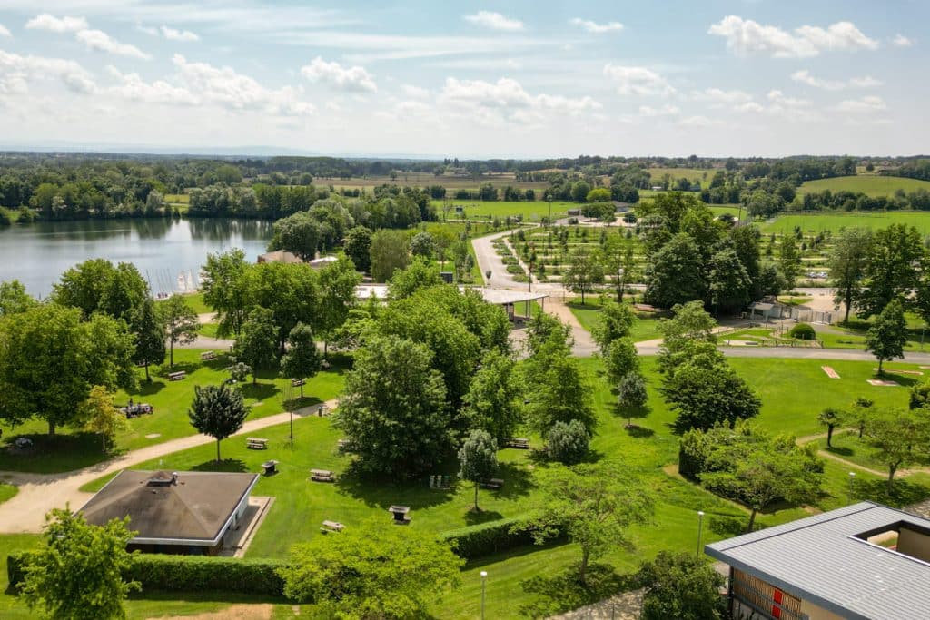 Les emplacements du camping la Plaine Tonique sont de 100m², en moyenne, et sont situés entre rivière et lac.