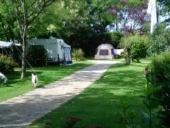 Emplacements herbeux délimités par des arbustes et haies pouvant accueillir tente, caravane, camping-car.