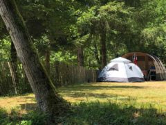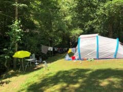 Le camping dispose d’emplacements ombragés aux bord du ruisseau , d’emplacements exposés Sud avec des vues dégagées sur les collines alentours, et des arbres pour profiter de l’mbre aussi. Trois terrasses sont réservés aux tentes.