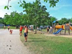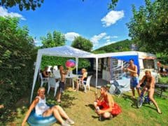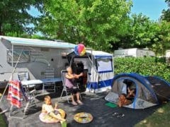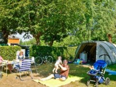 Les emplacements sont plats, ombragés ou semi-ombragés, séparés par des haies ou parfois ouverts. Certains sont situés en bordure de rivière. Les points d’eau sont présents un peu partout dans le camping.