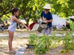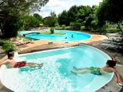 ici c’est une vie paisible, dans le camping tout se fait à pied, à vélo, on accède à la place du village par un petit chemin à la rencontre du boucher , de l’épicière et le soir on échange sous les lampions à la chaleur des braseros un verre de vin local au bar à vin du camping.