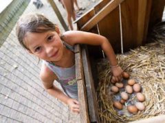 Ramassage des œufs au poulailler