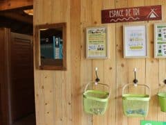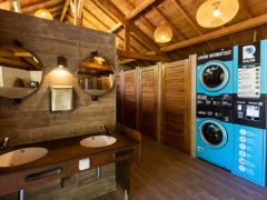 Bien entendu c’est surtout le sanitaire que l’on apprécie lorsqu’on est campeur : un sanitaire tout neuf équipé de wc, toilettes et lavabos enfants, wc enfants douche famille, sèche-cheveux, tout est prévu pour le confort de de vraies salles d’eau comme chez soi. Espace bébé avec baignoire et table à langer, 2 espaces pour personnes à mobilité réduite. Plus rare, ce sanitaire a été conçu comme un vrai lieu de vie, non seulement un lieu fonctionnel mais décoré et aménagé avec le plus grand soin dans le choix des matériaux, des couleurs … à l’image du bar à vin « chez sophie » un lieu où vous aurez plaisir à aller et dont vous vous souviendrez !