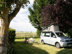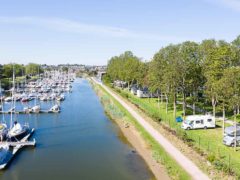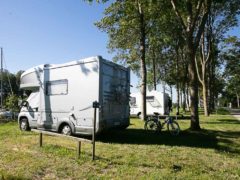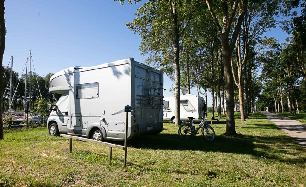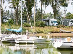 Certains emplacements « confort canal » sur la partie haute du camping ont vue sur le port et ses bateaux ou bien sur l’hippodrome à l’ombre de grands arbres.