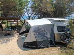 Enfin en plus de votre caravane, auvent vous avez souvent la place de garer votre voiture sur votre place et sur la plupart des places vous pourrez installer une ou deux petites tentes supplémentaires.