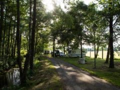 The campsite has 90 pitches suitable for a tent, caravan, tent trailer or motor home. No strict floor plan has been used for the layout of the sites, but the nature surrounding the sites has been taken as a starting point. Some of the sites are located on the lake and others in the forest. The spacious pitches are tree-lined so that you can enjoy the peace and quiet. All pitches are very comfortable. They have more than 100m2, own 10amp electricity, own tap and grey water drainage.