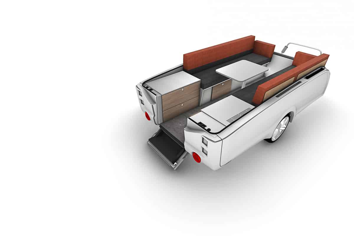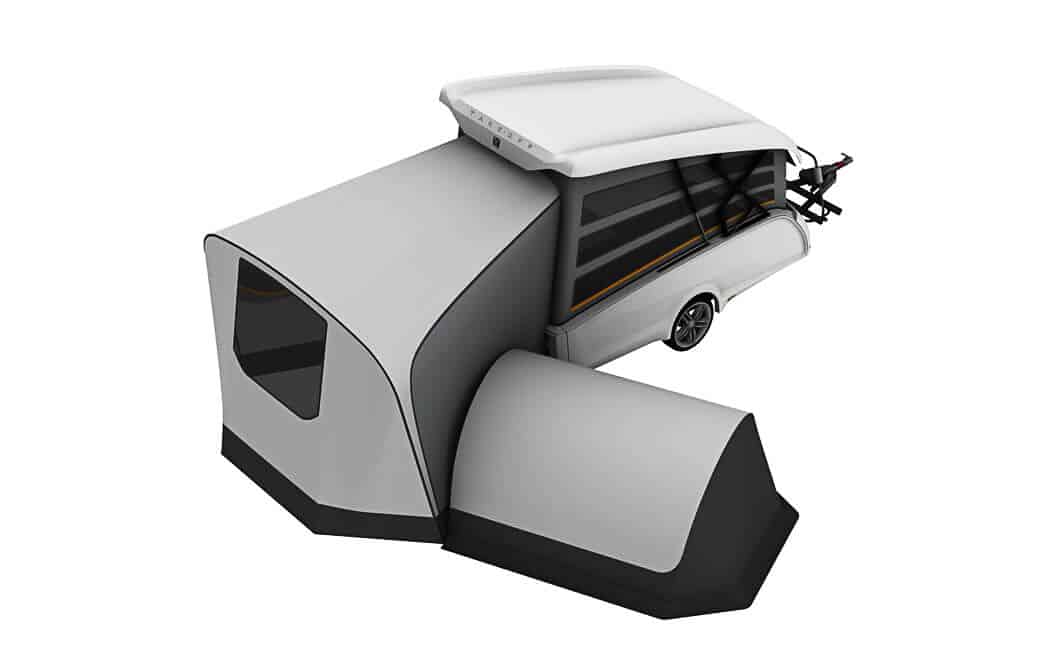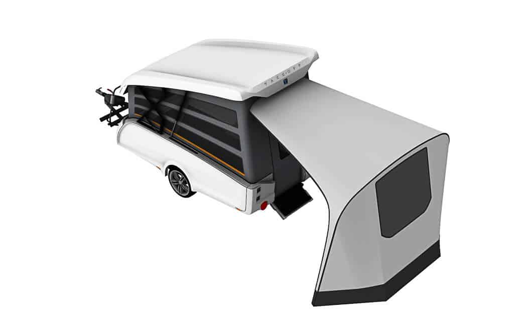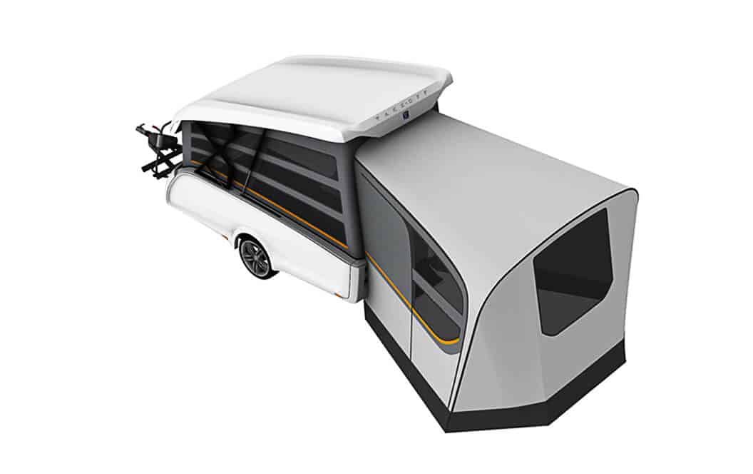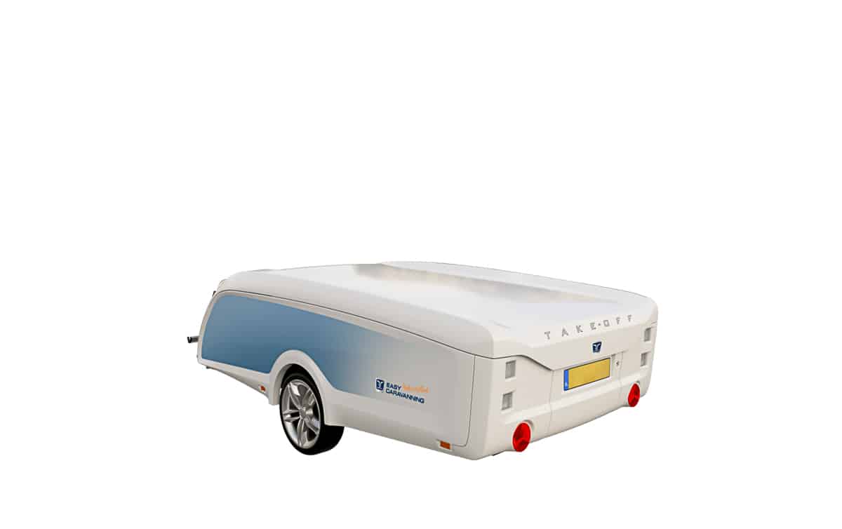 Cette caravane au design séduisant a été lancée à la fin de l’année 2019 par trois anciens collègues de Kip Caravans. Ils ont apporté un soin tout particulier à sa ligne aérodynamique. Le but de cette caravane pliante étant de réduire l’empreinte CO2 des vacances. Pour la produire, ils se sont associés à Holtkamper pour la caravane et à Karsten pour son auvent. Soit deux des marques les plus réputées dans le monde du camping aux Pays-Bas. Autant dire, au regard de ces partenaires, que la qualité est un critère qui compte pour les créateurs de la TakeOff.