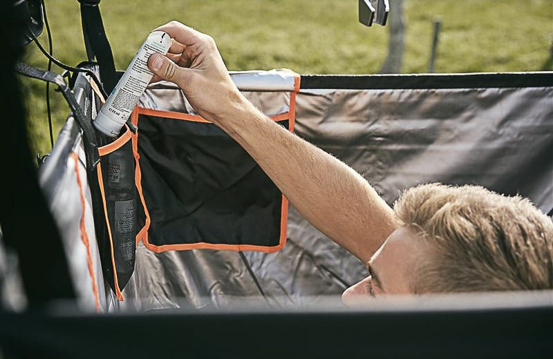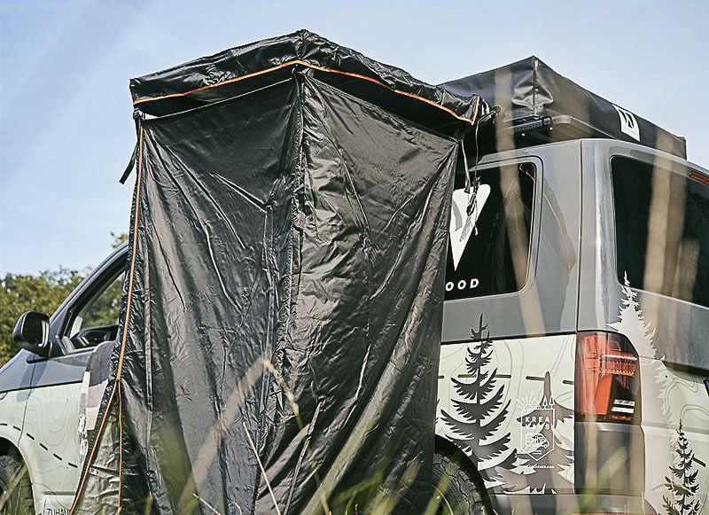 Une des spécificités de la marque de tentes de toit allemande, ce sont les nombreux accessoires proposés par Vickywood avec des auvents, des tentes de douche, des stores latéraux ou encore des extensions de stores.